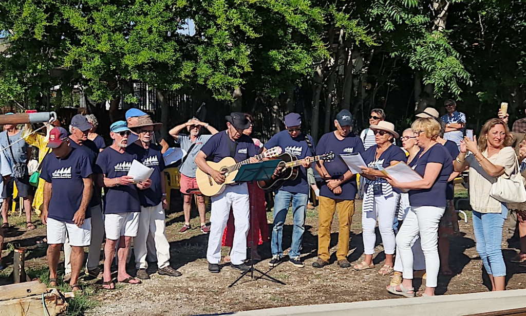Le dernier chantier naval traditionnel de Sète, à la Plagette (au bord de l’étang), s’est aussi mis à chanter… L’association des Voiles Latines de Sète et du Bassin de Thau a mis en place une activité chants de marins, au départ comme élément de promotion lors des rassemblements de vieux gréements. En s’imprégnant des évolutions présentées dans ce document, les bénévoles de cette association se retrouvent régulièrement pour entonner des chants de marins traditionnels, des chants typiques du Bassin de Thau et des chants traitant directement des bateaux ou de la pêche sur l’étang. Ces chants peuvent être des interprétations de chants connus comme « pique la baleine» qui devient sous la plume de Jacques Molinari « pêche la dorade, le loup, le mulet, sur l’étang de Thau pose tes capéchades… ». Sur un texte de Bernard Vigne, « l’esperança » décrit une barque traditionnelle de pèche. « Le Loud », un bateau Tunisien a inspiré à Antoine Formosa (ancien pécheur) une chanson toute en finesse et en poésie. Plutôt qu’un spectacle, ce groupe veut faire partager le plaisir de chanter à l’ensemble des bénévoles du chantier ainsi qu’au public.
