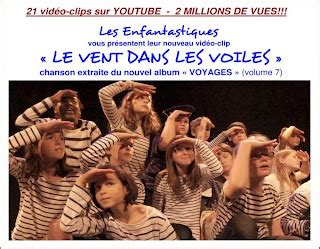 Nous vous indiquons aussi le projet pédagogique, artistique, citoyen et solidaire (sic) « les Enfantastiques ». Un répertoire avec des chants adaptés aux enfants des écoles primaires, présenté en vidéo (70 millions de vues sur YouTube) avec des aides à l’accompagnement choral et musical (pas à pas) et des fiches techniques pour les enseignants. Ce projet a maintenant vingt ans et le chant de marins y est présent notamment par la chanson « le vent dans les voiles » permettant à des enfants en France, Belgique, Suisse et au Quebec de découvrir le monde de la voile et son vocabulaire.